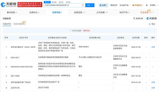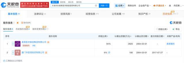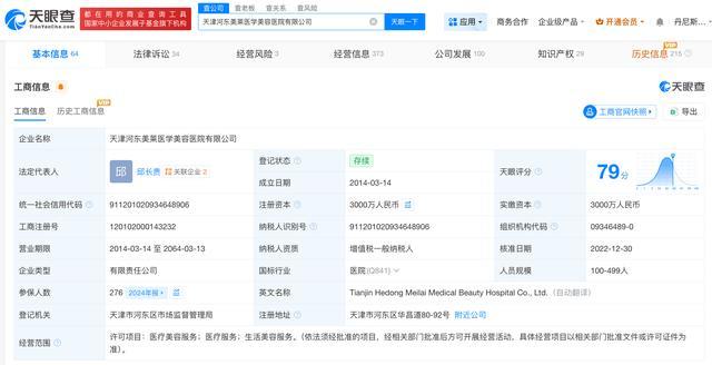 天眼查App显示,天津河东美莱医学美容医院有限公司成立于2014年3月,法定代表人为邱长贵,注册资本3000万人民币,经营范围包括医疗美容服务、医疗服务、生活美容服务,由美莱医学美容集团有限公司、厦门华医馆投资有限公司共同持股。天眼风险信息显示,该公司存在多条行政处罚信息,其中,2025年7月,该公司因违规发布广告被罚,2024年6月,该公司因未按照医疗器械适用范围使用医疗器械被罚,2021年4月,该公司因未依照规定存麻醉药品和第一类精神药品被警告。此外黄金炒股配资网,该公司多次因医疗纠纷被起诉。